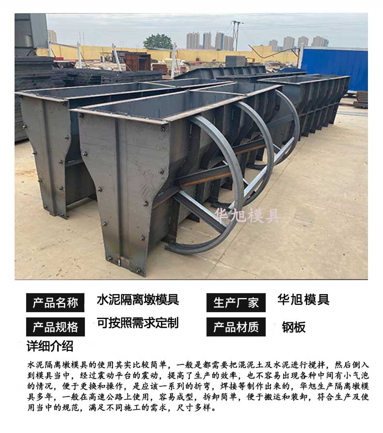 客戶反饋:經過多家了解,后來選擇了華旭的水泥隔離墩模具,脫模速度快,使用效率高,而且節約了我們的施工周期,耐磨性強,可重復操作及使用,一般情況下使用了好多年,容易成型,操作簡單,值得信賴。