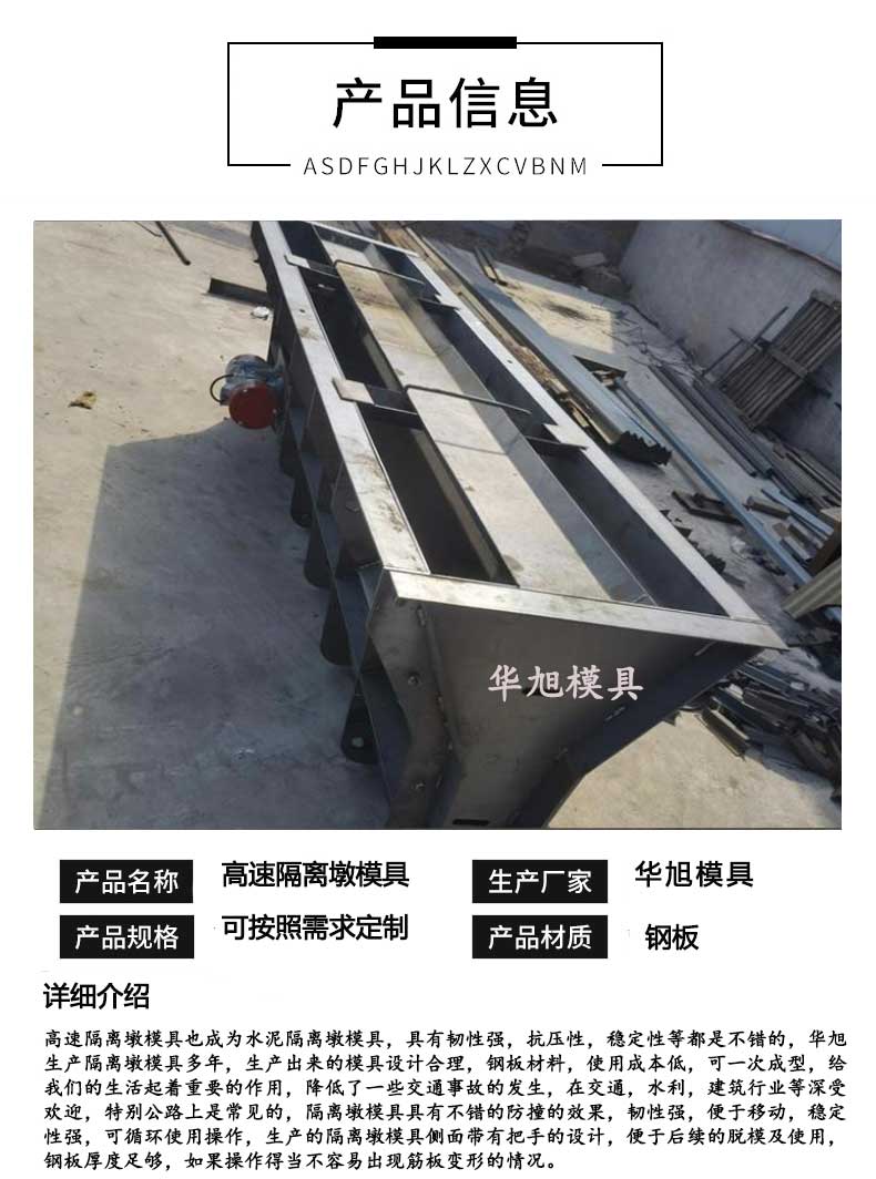 華旭生產的高速隔離墩模具符合生產標準,而且出廠以前都經過檢測,確保隔離墩模具符合施工要求。